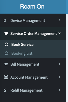 Once logged in to the portal, to book data on your device select Service Order Management > Book Service.