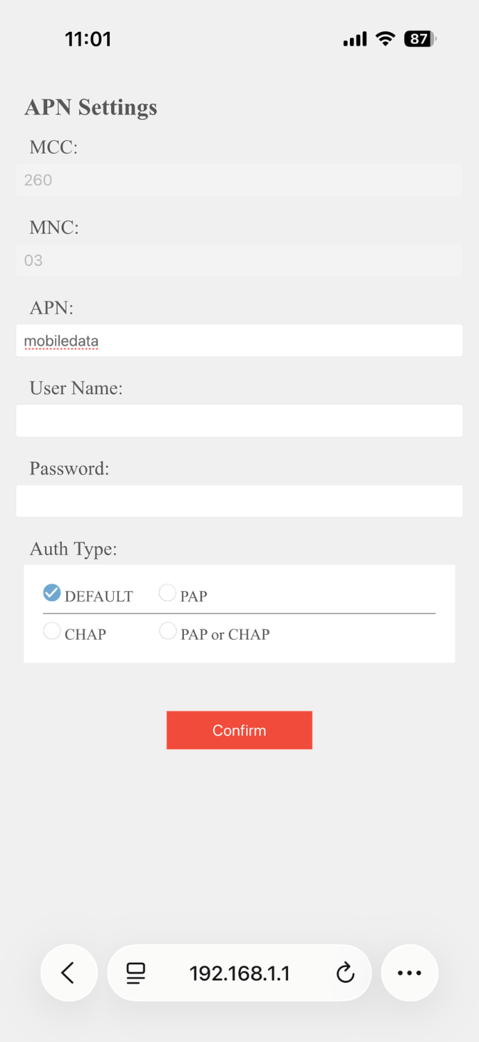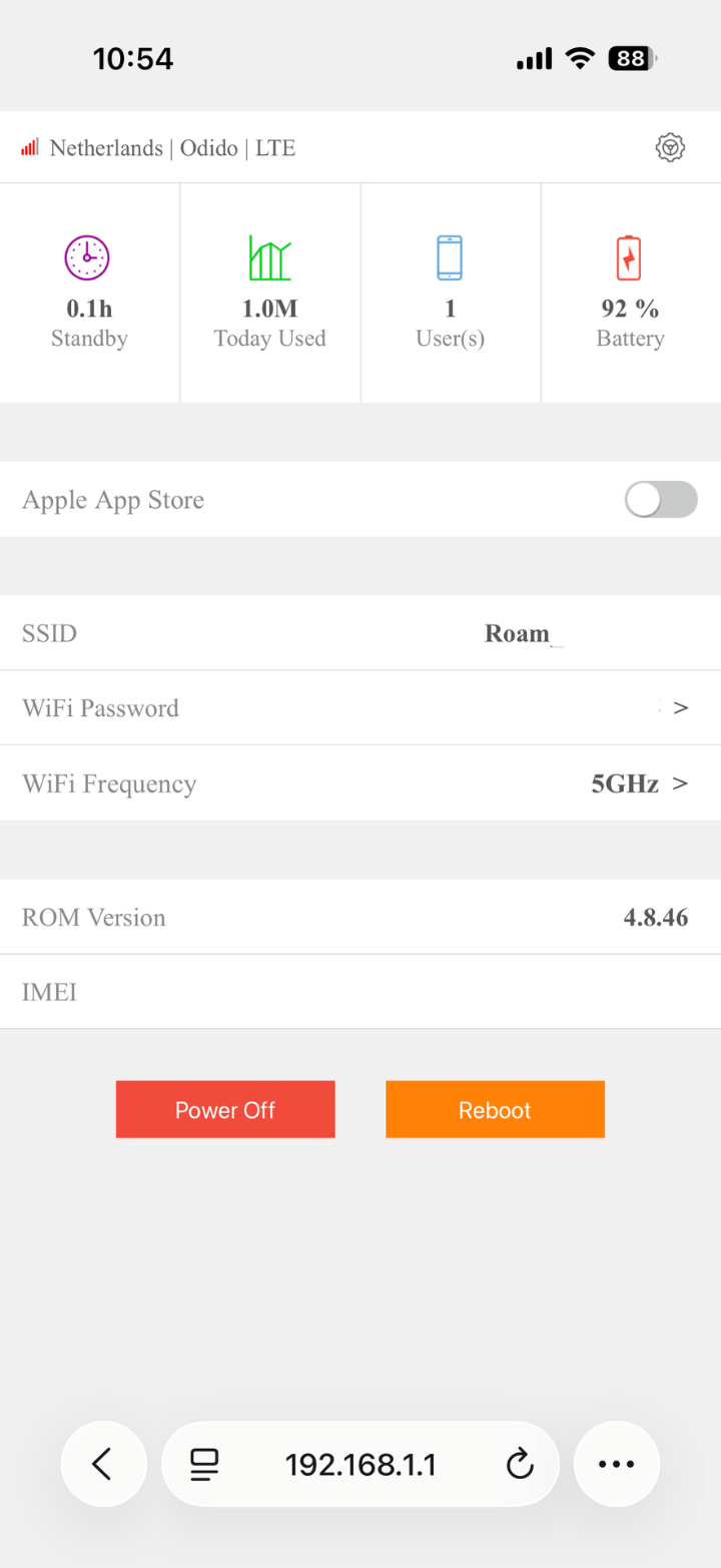 You will need to change a setting on the device. Once connected to the Roam-On's wifi, open a browser on your device (phone/tablet or PC) and go to 192.168.1.1